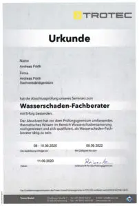 - Zertifizierter Wasserschaden-Fachberater