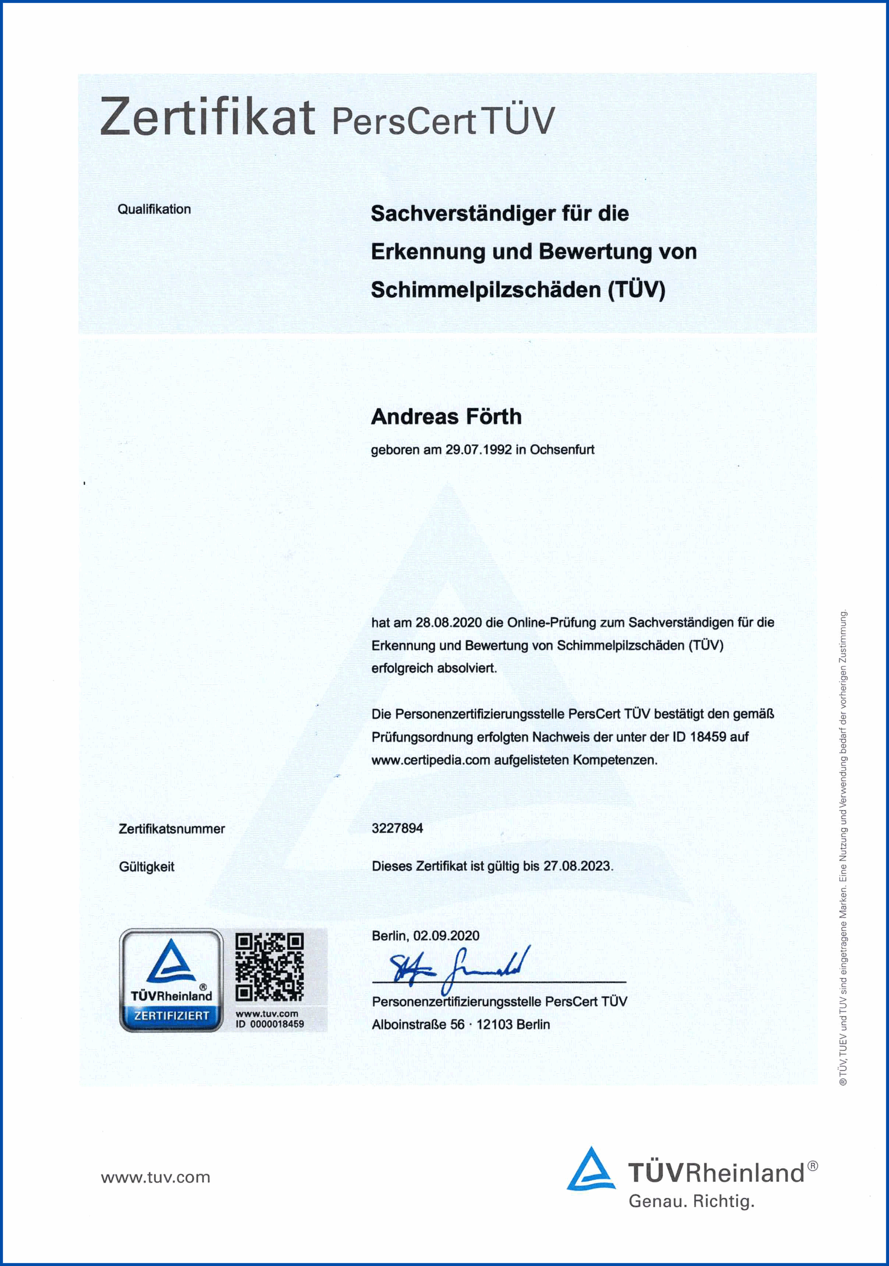 - Von der Handwerkskammer für Unterfranken öffentlich bestellter und vereidigter Sachverständiger für das Holz- und Bautenschutz-Handwerk. Teilgebiet: Schimmelpilzerkennung, -bewertung, -sanierung