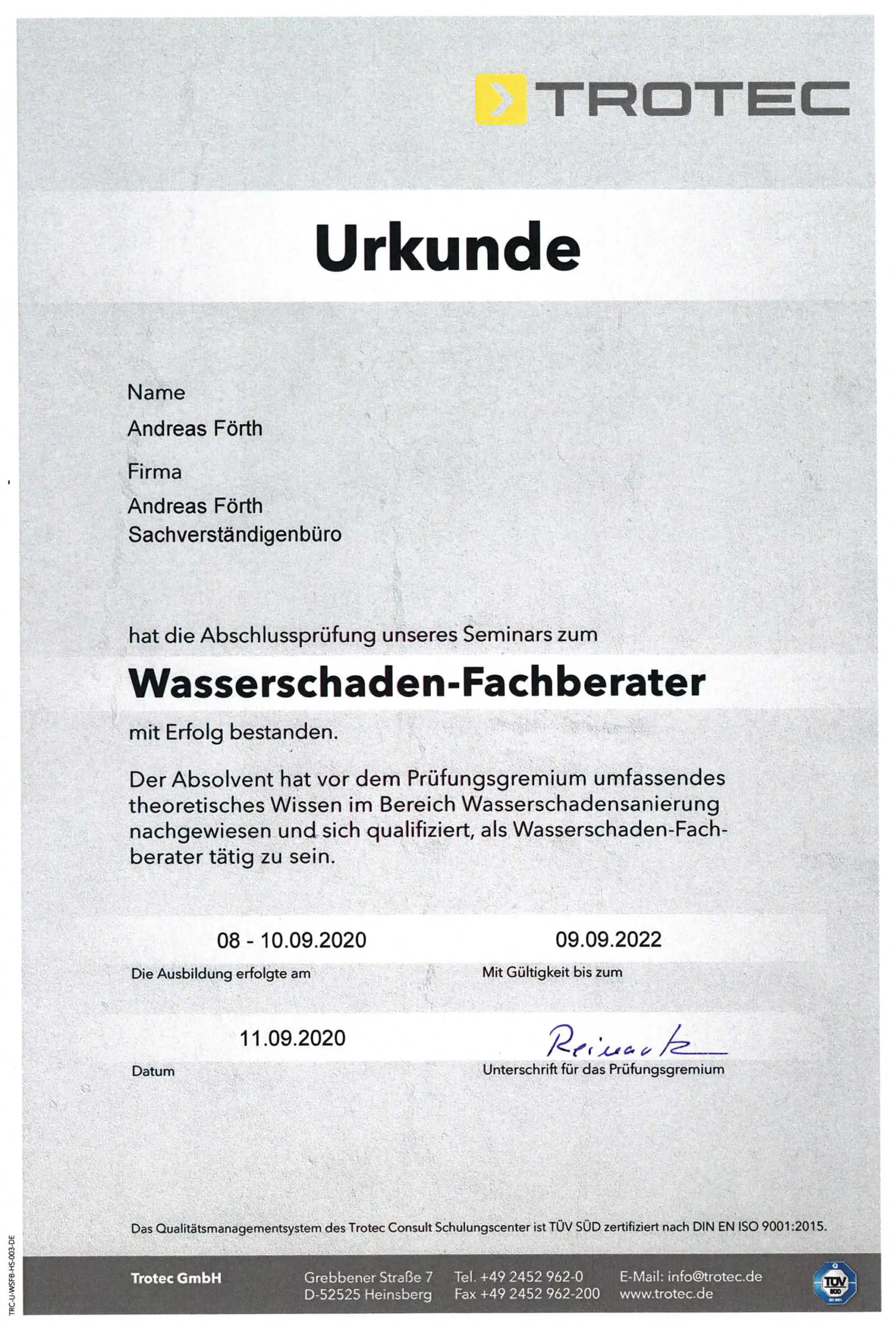 - Zertifizierter Wasserschaden-Fachberater